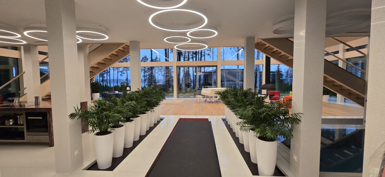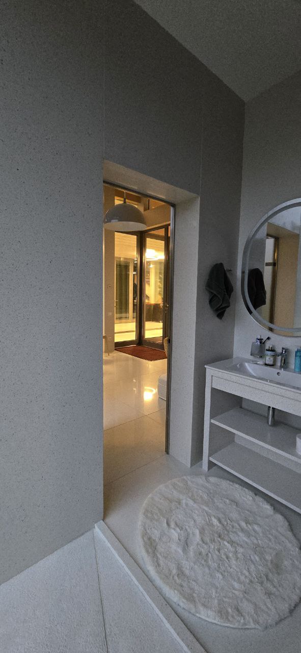 - Отделка стен камнем в гостиной, прихожей и кухни частично или полностью;